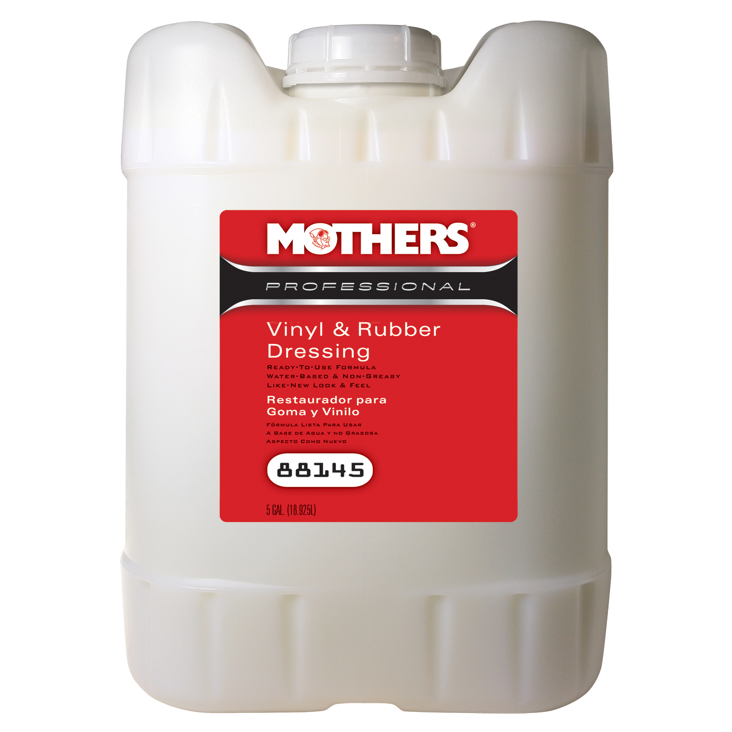 Mothers® Vinyl & Rubber Dressing is extremely versatile, and can be used on all vinyl, rubber and plastic surfaces, even engine compartments. Protects all these surfaces from the elements, and leaves a non-greasy, «like new» finish that will not attract dust. This white silicone emulsion features a thick, creamy consistency that is easily sprayed or wiped onto any surface, and dries to a medium-high shine. Does not contain soaps, glycerin or other extenders.