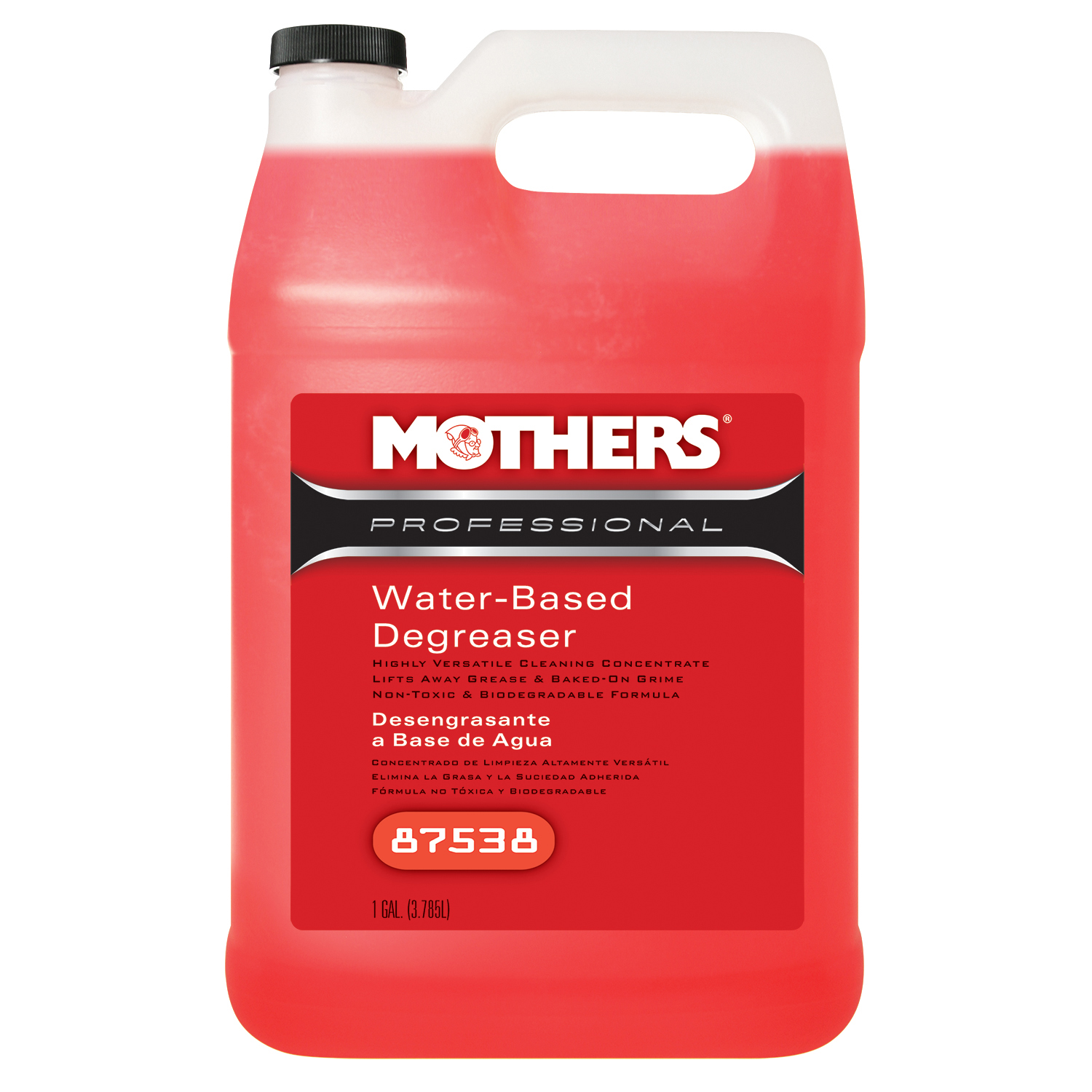 Mothers® Water-Based Degreaser features a safe but effective blend of grease cutting surfactants and biodegradable solvents which lift away carbon and baked-on grime from a variety of surfaces. This non-toxic, super-concentrate is tough on tenacious filth, but will not stain paint or harm aluminum engine components.Notes:Recommended Dilutions:Light to Moderate Degreasing – 1:4General Purpose – 1:2Heavy / Engine Degreasing – 1:1